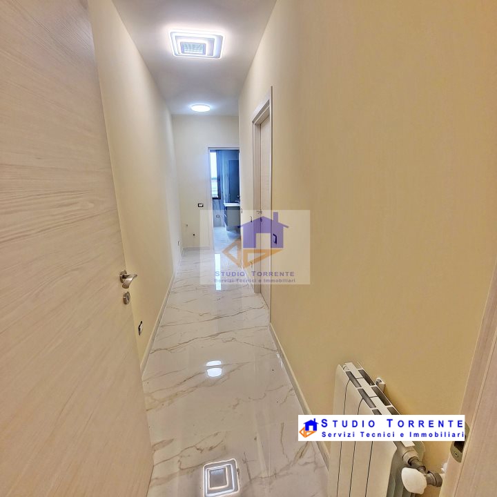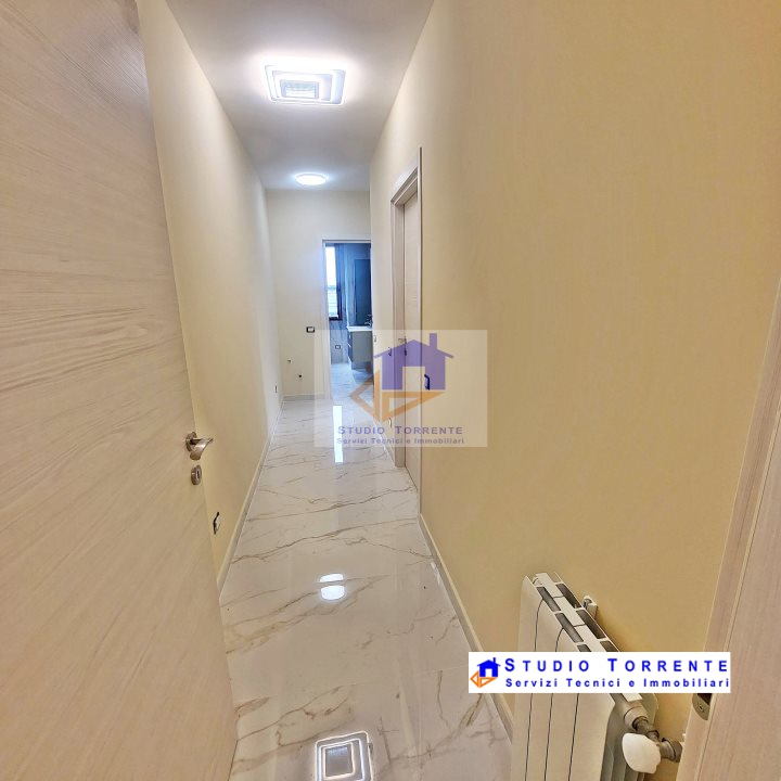 lungo corridoio sfruttabile con armadi, bagno con doccia e sanitari sospesi di design, doppia esposizione ad angolo.